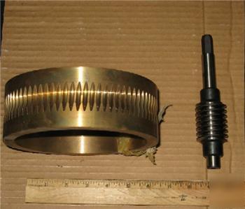 This is a Bronze/Steel Worm Drive for Model G80K340/10 Kleinewefer Supercalender Suspension Device. It is 6 3/4" Long, has an Outer Diameter of 6 3/4" and an Inner Diameter of 5 5/8". Kleinewefer Part # 8323487.