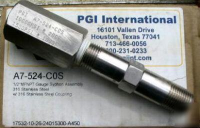 > Pgi 1/2" gauge siphon stainless steel ss valve A7-524